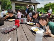 サファリパークでランチです。カレーライスとサラダです。みんな元気です。
