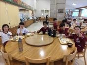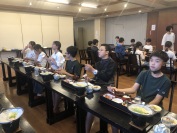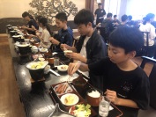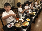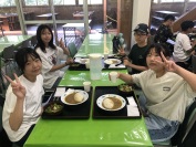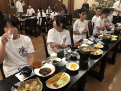 みんなで元気に朝食です。体調不良者もなくみんな食欲旺盛です。今日も暑さが心配ですが、予定通りの旅程となります。