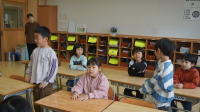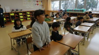 6年生は外国語です。英語で自己紹介をしています。ちょっと緊張しています。