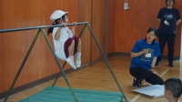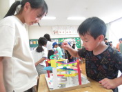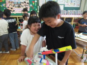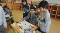 4年が、図工の作品で作った「コロコロガーレ」を使って大会を開きました。1~3年生を招待して行いましたが、6年生まで参加するほどの大盛況でした。素敵な時間でした。