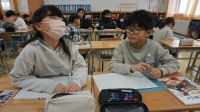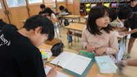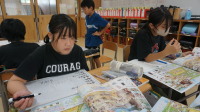 5年生は辞書を使って四文字熟語を調べています。あまりなじみがなく、苦戦しているようです。