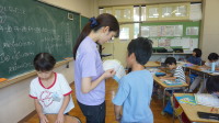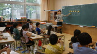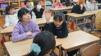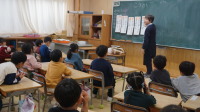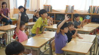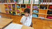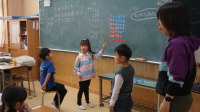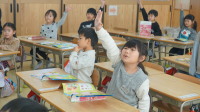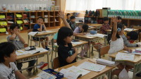 1年生はさんすうで数について学習しています。ほぼ全員が手を挙げて発言しています。素晴らしいです。