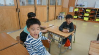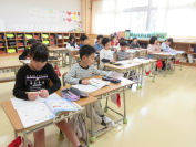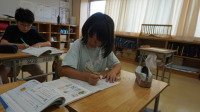 4年生は自分で選択した学習に取り組んでいます。漢字ドリルや計算ドリルなど、内容は様々です。とても集中しています。