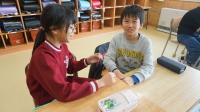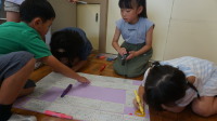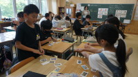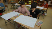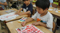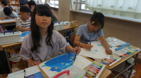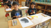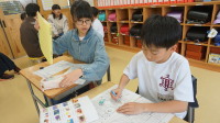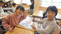 6年生は総合学習で、縦割り班のカードを作成しています。デザインや色など、工夫されています。