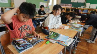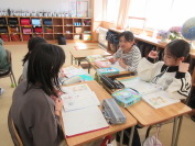 4年生は学活でいろいろなことをやっています。一迎会の準備や係ポスター作りなど…早く終わった児童は読書をしています。