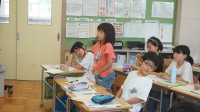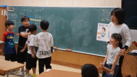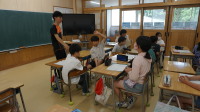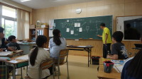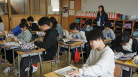 6年生は藤塚先生とハリー先生の外国語です。ほぼ英語で授業が進んでいます。