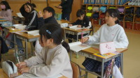 2年生は国語で教科書を読んでいます。内容をよく考えながら読み進めています。