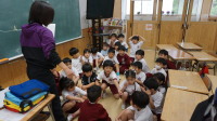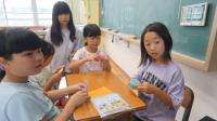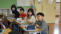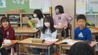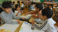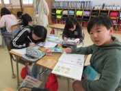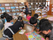 3・4年生は合同で図書室を利用しています。図書ボランティアさんの協力により、図書室はいつもきれいになっています。みんな本を読むのが大好きです。