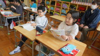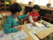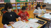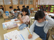 1年生は国語で、教科書を楽しく読んでいます。すらすらと何度も読めること目標に頑張っています。