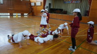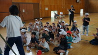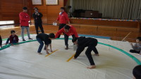 昼休みに青年会議所の方々が来校し、わんぱく相撲体験会を行いました。たくさんの児童が集まり大盛り上がりでした。