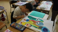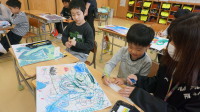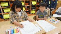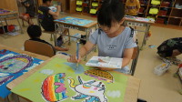 2年生はお絵かきです。個性あふれる作品が目白押しです。