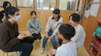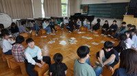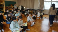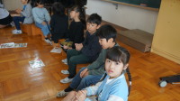 2年生は学活で縦割り班のメンバー確認をしています。縦割り班ではレクリエーションをしたり清掃をしたりします。