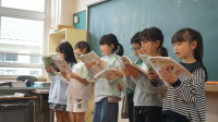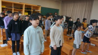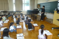 1年生は音楽で校歌を練習しています。歌詞を考えながら楽しく学習しています。