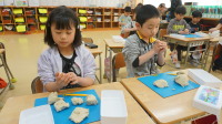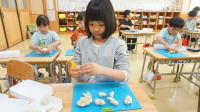 2年生は図工で粘土の作品をつくっています。子どもたちの発想はとても豊かです。