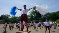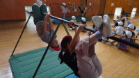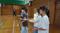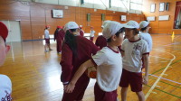5年生は体育で協力してボールを運ぶリレーをしています。それぞれ工夫しながらタイムが縮められるよう頑張っています。