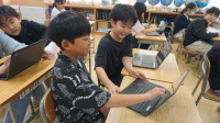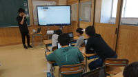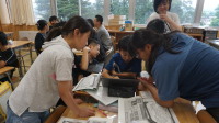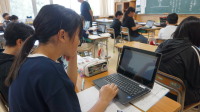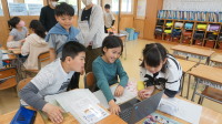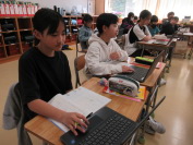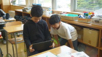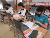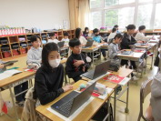 5年生はタブレット端末を使って、妙高宿泊研修について調べています。端末の使い方にもだいぶ慣れてきました。