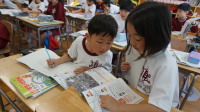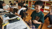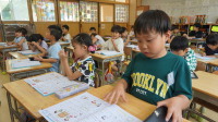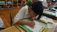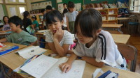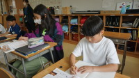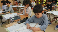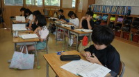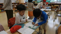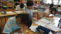 4年生はプリントを使って漢字の学習です。よく集中しています。