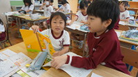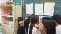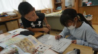 6年生は社会科で、資料を見ながら時代の違いについて学習しています。服装や食べ物など、多くの発見があります。