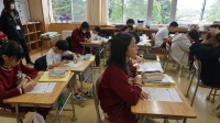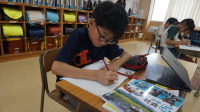 5年生は国語で、昨年学習した漢字を使って文章をつくっています。なかなか難しいようです。