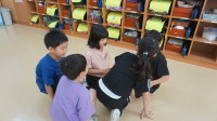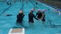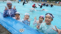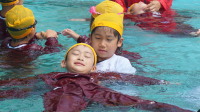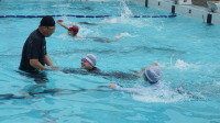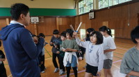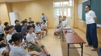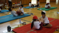 今日は小千谷消防署の方に来ていただき、着衣泳「浮いて待て」の指導を受けています。非常時の対応についてしっかりと学習しています。
