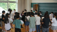 今日は1学期終業式です。校長先生から、児童の1学期の頑張りを紹介した後、養護助教諭の離任式を行いました。明日から夏休みです。体調を崩さず、元気に過ごして欲しいと願っています。