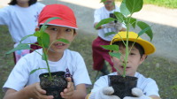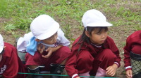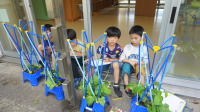 1年生は生活科であさがおを育てる準備をしています。今日は種を確認しているようです。