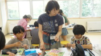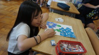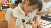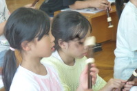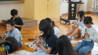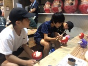 最後の活動であるダルマの絵付けです。気持ちを込めることが大切と指導され、みんな一言も話さず集中しています。これが終わったら予定通り帰ります。