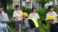 5年生は自転車安全教室で、学区内を実際に自転車走行し、危険個所を確認します。特にバス通りに注意しています。