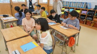 4年生は社会で、なぜ下にあるのに上越で、上にあるのに下越なのか?について考えています。活発な話し合い活動が展開しています。