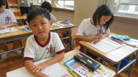 1年生はこれまで学習してきた「たしざん」をドリルで確認しています。1+5や4+3など。みんなしっかりと取り組めています。