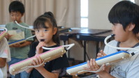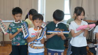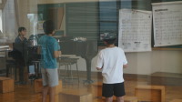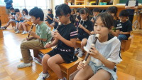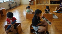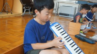 2年生は音楽で、ピアノに合わせて鍵盤ハーモニカを練習しています。きれいな音色が聞こえてきます。