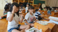 4年生は理科で、夏のさくらの葉を観察して絵に描いています。みんなとても上手に描けています。