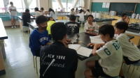 2年生は学活で1学期頑張ることを話し合っています。みんな真剣に考えています。