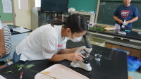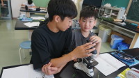 6年生は理科で、葉の働きについて学習しています。今日は顕微鏡で気孔を観察しています。驚きの声が上がっています。