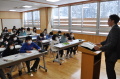 午後、南小学校6年生と保護者の皆さんをお迎えして、入学説明会を行いました。 まずは学校説明会で中学校職員から中学生活について説明がありました。(とても聞く態度が素晴らしかったです)【写真左】、そして児童の皆さんは南中生による学校紹介【写真中央】、保護者の皆さんは小千谷警察署の松田様から情報セキュリティー講話をしていただきました。 最後は部活動の見学、体験【写真右】と盛りだくさんの日程でした。 新入生の皆さん、南中のみんなが待ってます!!