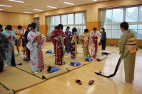 2年生を対象に家庭科の時間に「ゆかた着付け講座」が行われました。 私たちが住んでいる小千谷市は「小千谷縮」に代表されるように、伝統的な織物の文化が育まれています。 今回は3人のボランティアの方々に来校していただき、自分でゆかたの着付けができるように、教えていただきました。 脈々と受け継がれてきた「和」の文化を大切にしていきましょう!!
