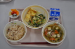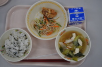 三月に入りました。深い朝霧の奥に太陽がくっきりと昇る、南中ならではの幻想的な風景です。【写真右】 卒業式の練習や歌など、順調に準備が進んでいます。 今日の給食は「中3リクエスト献立」です。わかめごはん、鶏のからあげ、春雨サラダ、中華豆腐スープ、牛乳(計811kcal)でした。 3年生は明日が中学生活ラストの給食です。明日も楽しみですね!!