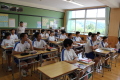総合的な学習の時間の中で、ナレッジメントデザインの加藤誠さんをお呼びして職業講話をききました。どの生徒も自分の将来について考えながら真剣な表情できいていました。「今からでもできる『責任感をもって行動すること』、『当たり前のことを最後まですること』を心がけたいと思った。」、「自分は将来こうなりたいということを真剣に考えたことはなかったので自己分析をしてみて、少しでも興味のもてるものが出てきたらいいと思った。」など、それぞれに感想を述べていました。