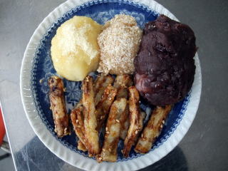 ・ ごぼうのから揚げは、味もしょっぱ過ぎずにとてもおいしかったです。ぼたもちはちょっと米がつぶれてなくて僕の舌には合わなかったけれど、胡麻は甘いし、いい香りで、きなこはさらさらして、つぶれていない米とよく合っていました。あんこも甘くておいしかったです。