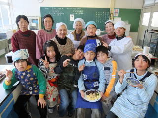 当日の給食はパンであったため、子どもたちは ぼたもちを腹一杯食べ、とても満足そうでした。