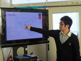 平成22年1月20日(水)に2月から10ヶ月間、JICAの青年海外協力隊としてニカラグアに派遣される原さんからおいでいただき、以前派遣されたコスタリカやチリについてやニカラグアでの青年海外協力隊活動にかける意気込みをお聞きしました。