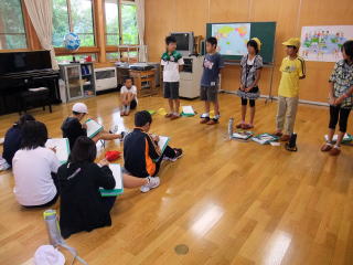 | 東山小の友達に自己紹介 | 棚田についてのお話をお聞きしました |