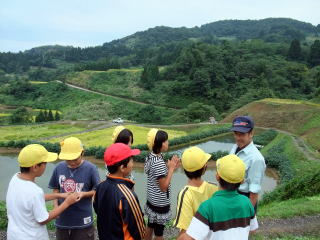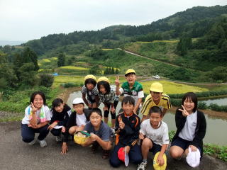 まず、東山小学校で自己紹介をした後、棚田を見に行きました。