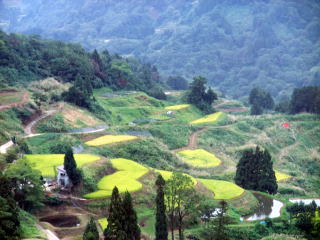 | 東山の棚田をバックに! | 長岡市・小千谷市の境界 |
