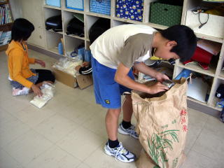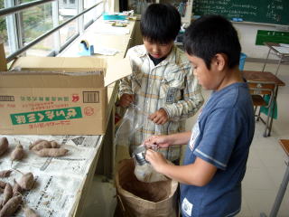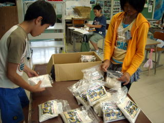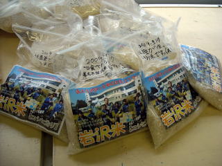 トキめき新潟国体 小千谷バレーボール大会(10月2日〜5日)の初日に、5年生が育てた「岩沢米」を販売する準備を行いました。