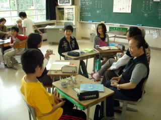 5月26日(火)5・6限に毎週水曜日の地産地消給食でお世話になっている「まごころ市」6名の方々から教室においでいただき楽しく交流しました。今回は国語「地域との交流計画を立てよう」を受けて行いました。2人一組になって招待状、司会・会場作り、お茶会、昔遊びなどの計画を立てて臨みました。