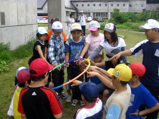 | フラフープを落とさないで着地させれるかなあ | キャッチリレー |