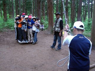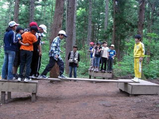 学校発9:00〜 少年自然の家着11:30 〜 開校式 〜 昼食(弁当) 〜 妙高アドベンチャー13:00〜