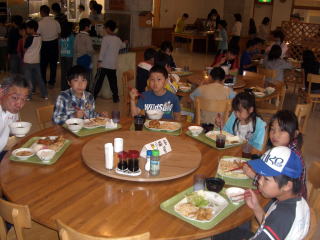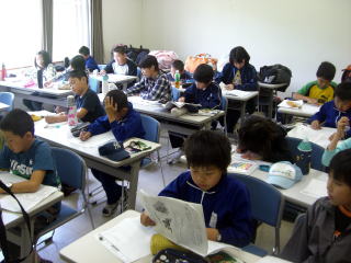 昼食12:00〜 新聞作り12:30〜 少年自然の家発13:30 〜 学校着16:00