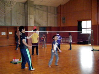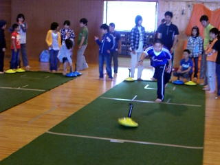 | 午後はニュースポーツ(左;ユニカール、右;インディアカ) | |